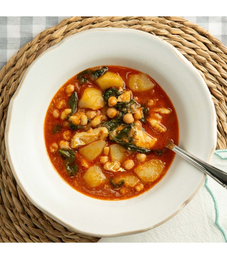 Contundente plato cocinado a partir de una base de legumbres y verduras.